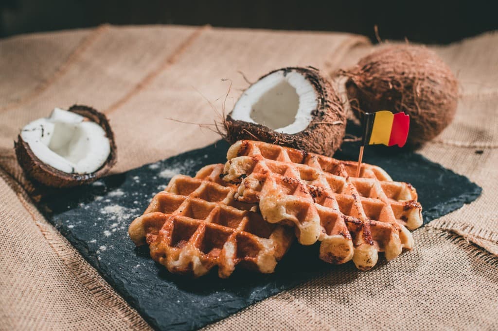 Gaufres artisanales, textures croustillantes, cœur moelleux.